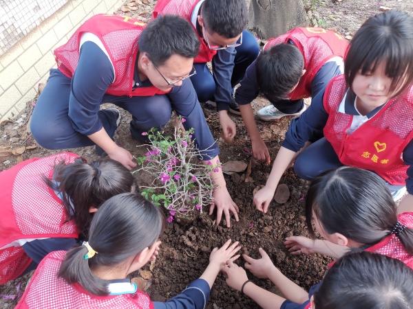 為響應國家義務植樹號召,提高青少年生態環保意識。2021年3月12日下午,大南中學團支部組織共青團員開展了“綠水青山 青年守護”植樹節主題團日活動。