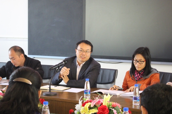 隨后,所有參加活動的人員到四樓榮譽室進行座談研討。周陽名老師先闡述本節(jié)復習課的教學目標、重難點以及教學思路,并進行自我反思,提出疑問。郭躍輝老師從教學設計、教學過程、教學效果等多個環(huán)節(jié)進行了點評,對課堂教學各個環(huán)節(jié)的處理、教學理念的創(chuàng)新提出指導性意見和建議,他認為本節(jié)課教學目標具體、可操作,落到實處,運用合適的教學方法達到預期教學效果。同時,郭躍輝老師的教研團隊對本節(jié)課的亮點與不足進行分析,并分享自己的期末備考教學經驗。