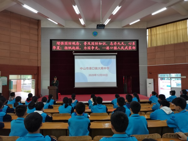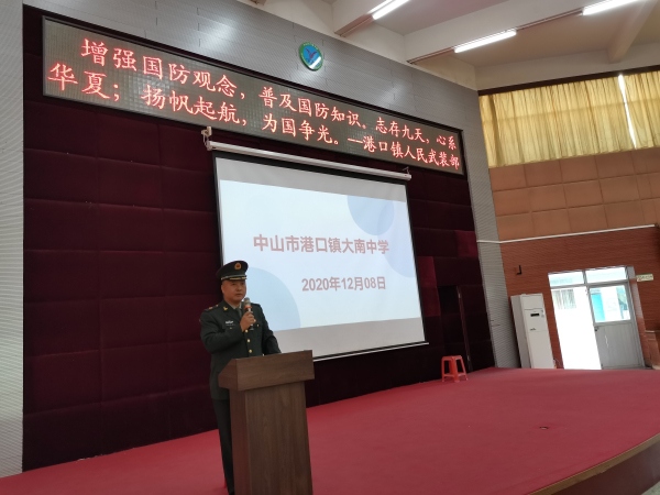 為進一步普及國防知識,增強學生的國防觀念,培養學生的愛國主義精神,2020年12月8日港口鎮大南中學在階梯室舉行了國防教育知識講座。此次講座由港口鎮人民武裝部副部長賀洪彪同志主講。