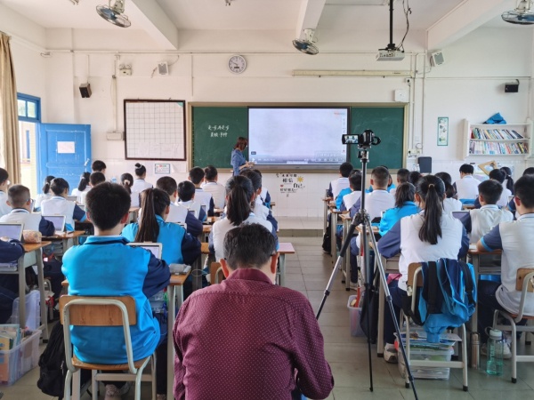 為推進中山市智慧校園示范培育推廣項目《基于“靈動”的初中智慧課堂的實踐研究》實施,港口鎮大南中學于11月25日下午開展了智慧課堂語文鎮示范課的聽評課活動。