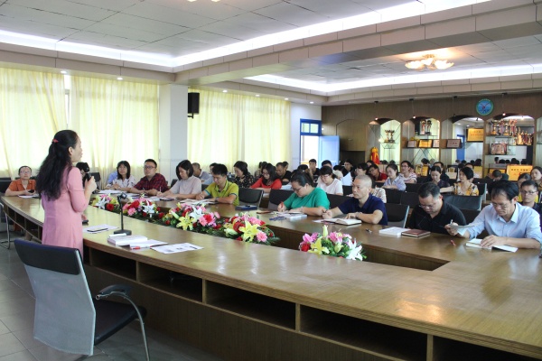 首先,副校長廖建紅簡介了《教育春秋》一書的整體建構和作者熊海敏,該書從“中國古代神話中的教與育”談到“教育展望”,分析對比古今中外教育思想、教育制度、教育管理、教育內容、教育方法、教育形式等,從古代教育及現代教育發展歷程中尋覓中華偉大復興的教育大道。廖建紅副校長重點圍繞“教育與修身”一章節談感想,她說教育需要信仰,在教育生涯中,教師要注重修德、修心、修行、修智、修禪、修善、修道,關注學生的健康成長和終身幸福。學會做有溫度的老師,做有厚度的教育。