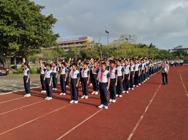 2020年9月21日,秋風微涼,金桂飄香,港口鎮大南中學2020級初一新生入學訓練成果匯演在足球場拉開序幕。
