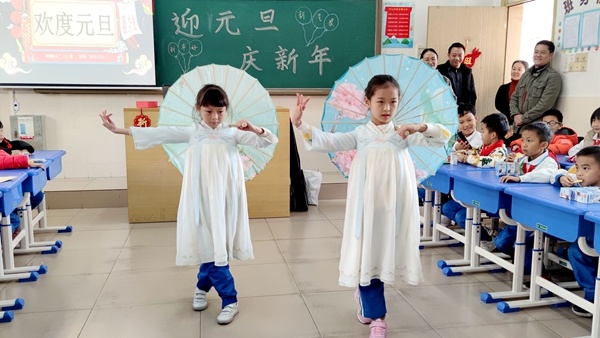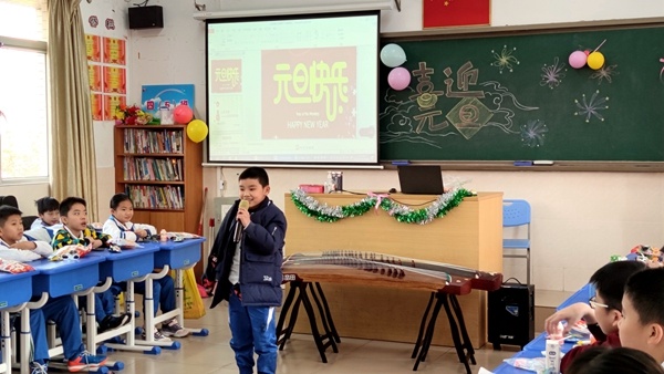 五彩繽紛的手繪黑板,精巧喜慶的節日裝飾,各具特色的主題板報……處處洋溢著同學們對節日的期待和祝福;光潔明亮的教室,整齊擺放的桌椅,平時嚴肅認真的教室化身成氛圍濃厚的小小舞臺,同學們精裝上場,表演了豐富多彩的節目。歌曲、相聲、舞蹈精彩紛呈,詩歌、小品、武術表演讓人耳目一新,古箏、電子琴、架子鼓、吉他才藝各展風采。每個班級傳出的喝彩聲此起彼伏,校園內洋溢著一片歡樂的節日氛圍。你說我猜、搶凳子、拍數字等團體活動,師生通過游戲真情互動,增進情誼。輕松和諧的氛圍,幽默活潑的風格,活動過程歡樂不斷。