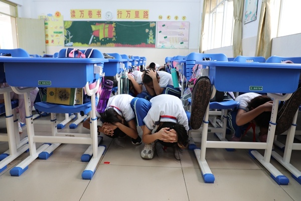 這次演練活動(dòng),全校師生給予了高度重視,前期的安全教育,演練的有條不紊,后期的總結(jié)提升,一切都按計(jì)劃進(jìn)行。上午9:30分,隨著警報(bào)聲在校園里急促響起,參演師生快速反應(yīng),躲進(jìn)桌下,就近緊急避險(xiǎn),警報(bào)聲結(jié)束,同學(xué)們在正副班主任的組織下,迅步走出課室,秩序井然地按指定路線快速疏散,各個(gè)樓層負(fù)責(zé)老師最后進(jìn)行確認(rèn),保證沒有一個(gè)學(xué)生滯留,全部學(xué)生在最快時(shí)間內(nèi)疏散到指定的安全地點(diǎn),班主任向場地負(fù)責(zé)人報(bào)告人數(shù)。