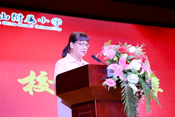 六年來,校園內每一條路都留下了我們的足跡。六年后,校園內每一朵花都變成了一段美好的回憶。在這隆重的典禮時刻,可敬可愛的梁校長上臺致辭。梁校長先向同學們即將順利完成小學學業表示祝賀,向老師和家長們的辛勤付出表示感謝;接著回顧了孩子們六年來的生活與學習,六年的時光,讓孩子們從一個天真的幼童,成長為一位陽光少年。最后,她希望孩子們做到“志存高遠,胸懷祖國”“百折不撓,鍥而不舍”“孜孜以求,手不釋卷”,本著“厚德篤學,弘毅敏行的校訓”,努力前行。