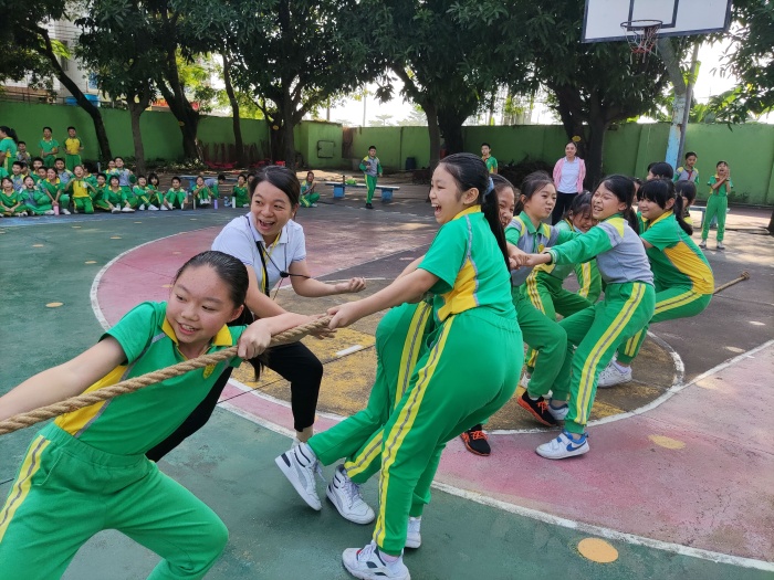 迎著秋日的陽光,伴隨著收獲的季節,11月6日下午,港口港源學校高年級組在學校籃球場上,開展了以“積極、向上、團結、奮進、健康、運動”為宗旨的趣味游戲活動。