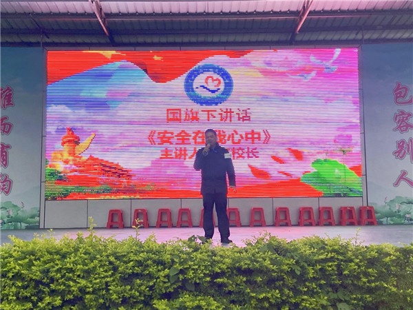 在三(4)班學生的帶領下,全體師生齊唱國歌,仰望鮮艷的五星紅旗冉冉升起,雄壯的國歌響徹云霄。升旗禮結束后,江振浩副校長進行國旗下講話,主題為《安全在我心中》。江振浩校長詳細介紹了大家身邊的安全隱患,叮囑同學們安全無小事,事事要小心。同學們多掌握一點安全知識,人生道路就多一份安全保障;平時多參加一次安全演練,危難時刻就多一份生的希望希望大家共同創建平安校園。