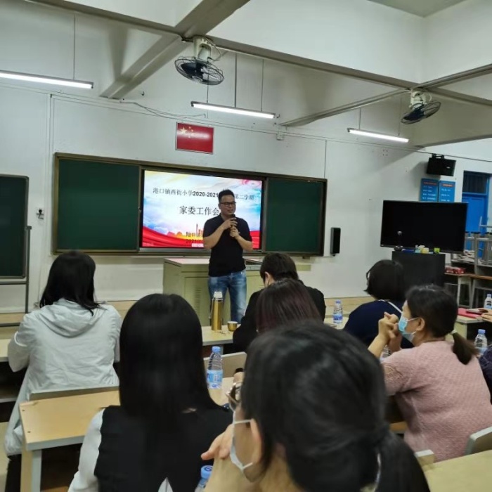 活動伊始,西街小學全體行政對各班家委會委員的到來表示熱烈的歡迎,感謝他們對家校聯動工作的全力支持與配合。首先,由校家委會成員代表做經驗分享。四4班家委蘇華浩先生向大家分享了家委成立的意義、家委的工作及開展班級家委工作的方法。六3班家委楊少飛女士以自己的班級家委工作為例,總結了開展班級家委工作的豐富經驗和注意事項。學校為了加強校級聯誼,讓家長們充分交流分享,還邀請了原港口鎮中心小學家委會會長劉明俊先生做工作經驗分享。劉會長從加強家校聯系溝通、增進家校互動的方法以及開展活動促進學生成長這幾方面做了詳細介紹。緊接著,梁麗鴻副校長向家委們介紹了本學期的家校德育工作,與家委們共同交流了各項工作的內容和要求。最后,章小蘭校長作了表態性發言,期待家校合力,共促學生的健康成長。