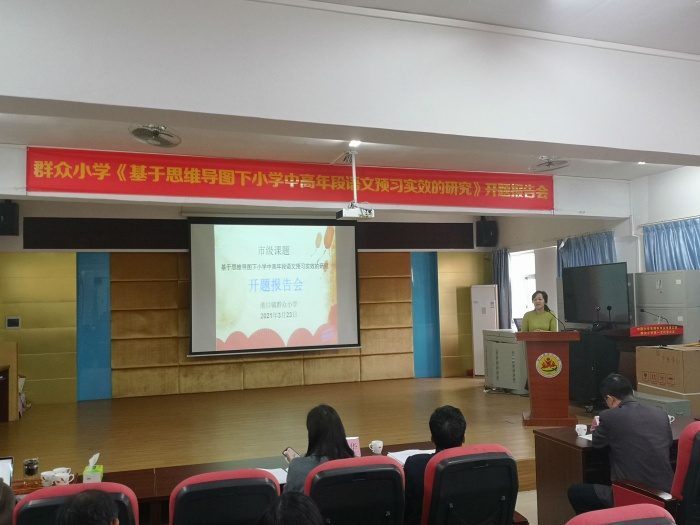 3月23日下午,群眾小學在四樓綜合室舉行市級立項課題《基于思維導圖下小學中高年段語文預習實效的研究》開題報告會。市課題專家萬小兵、吳海飛,鎮(zhèn)教育和體育事務(wù)中心張育文副主任、蘇彩南老師,課題管理人梁文玲等蒞臨現(xiàn)場指導。群眾小學學校全體行政、課題組成員、語文科組全體成員參加了此次報告會。