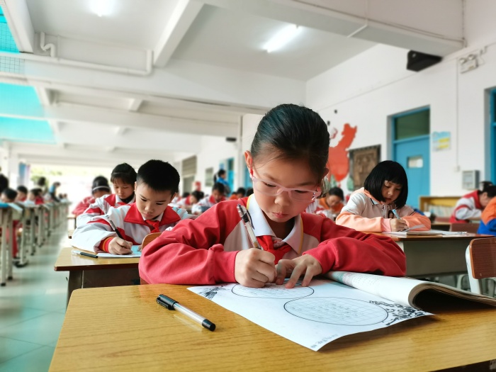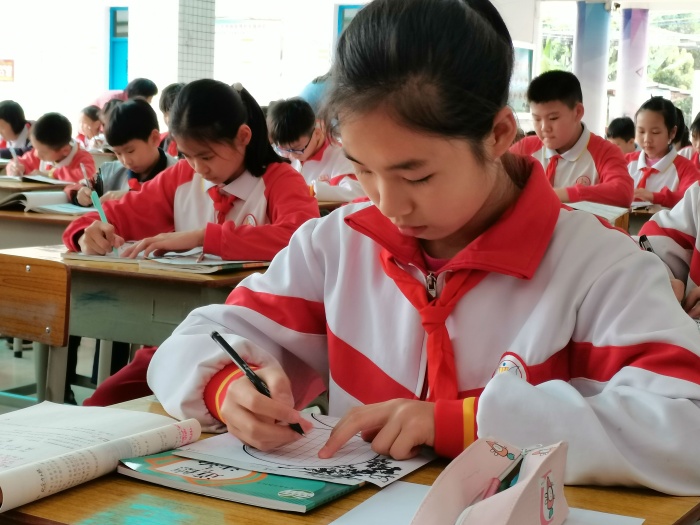 本次比賽是在各班選拔賽的基礎(chǔ)上,由各班推薦表現(xiàn)突出的選手參加現(xiàn)場比賽。學校統(tǒng)一發(fā)放標準書寫用紙,同學們在規(guī)定時間內(nèi)完成選定書寫內(nèi)容。比賽中,孩子們握筆正確,坐姿端正,表現(xiàn)出了良好的書寫習慣,所寫作品筆畫流暢,橫平豎直,結(jié)構(gòu)勻稱,整體美觀,每一筆都凝聚著對書法濃郁的熱愛。舞動的筆端流淌的不僅僅是有形之字,更是無言之詩,無形之舞,無色之畫,無聲之樂。