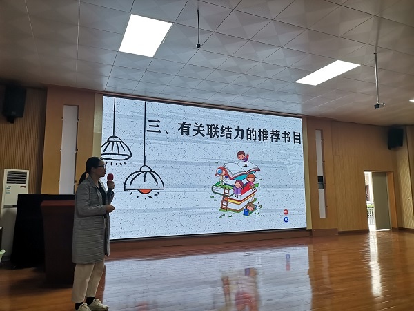 會上,李金友老師給在座的老師們分享了《閱讀力.文學(xué)作品的閱讀策略》第三章中“聯(lián)結(jié)力”的主要內(nèi)容和讀后心得,她通過精心設(shè)計的課件、生動的語言深入淺出的例子向在場的老師們具體介紹了什么是聯(lián)結(jié)力以及如何教會學(xué)生使用聯(lián)結(jié)力以及有關(guān)聯(lián)結(jié)力的推薦書目等方面的內(nèi)容。聽完李金友老師的閱讀分享后,老師們對“聯(lián)結(jié)力”這一閱讀策略以及實施建議有了更進(jìn)一步的認(rèn)識和了解,受益匪淺。分享會后,課題組的成員老師繼上次的研討后,針對實施班的調(diào)查問卷報告結(jié)果進(jìn)行了詳細(xì)地分析探討。研討過程中,課題組老師們對調(diào)查問卷的問題和結(jié)果從數(shù)據(jù)到文字,從學(xué)生到家長,從橫向到縱向,從部分到整體等維度都進(jìn)行了深刻的剖析和解讀、歸納和總結(jié),科研氣氛在活躍中更顯嚴(yán)謹(jǐn)認(rèn)真。