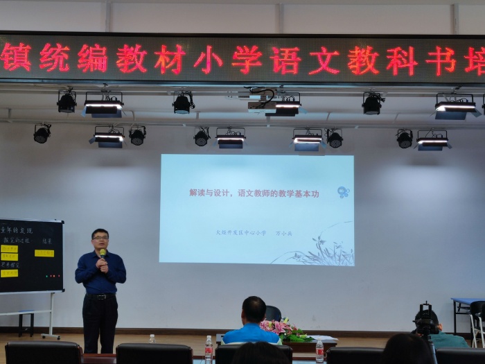 緊接著,由中山市語文名師萬小兵帶來專題講座《解讀與設(shè)計(jì)--語文教師的教學(xué)基本功》。萬校長從小學(xué)語文教師“四力”:文本解讀力、教學(xué)設(shè)計(jì)力、課堂駕馭力、經(jīng)驗(yàn)總結(jié)力出發(fā),結(jié)合豐富的教學(xué)案例進(jìn)行了精彩的講解。