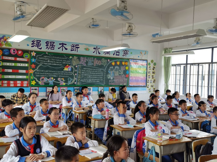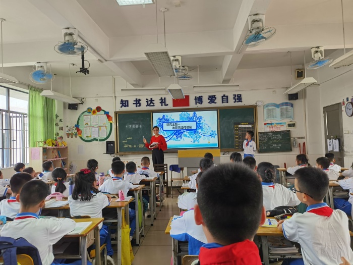 鐘捷斌老師則展示了三年級古詩教學課例《清明》。鐘老師從傳統文化中的節日入手,引入“平長仄短、入促韻長”的吟誦規則,帶領同學們感受吟誦之美。同學們對吟誦這種新的學習方式有著濃厚的興趣,通過個人讀、小組練、全班展示的方式逐步推進,深入學習。