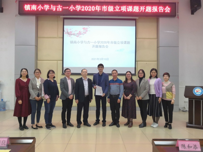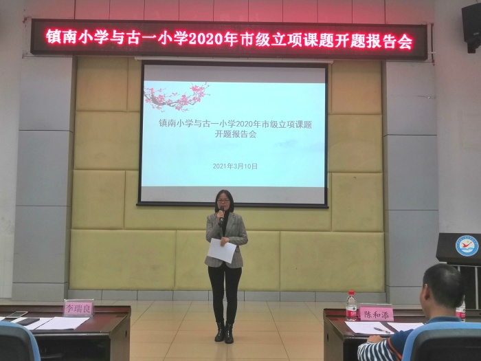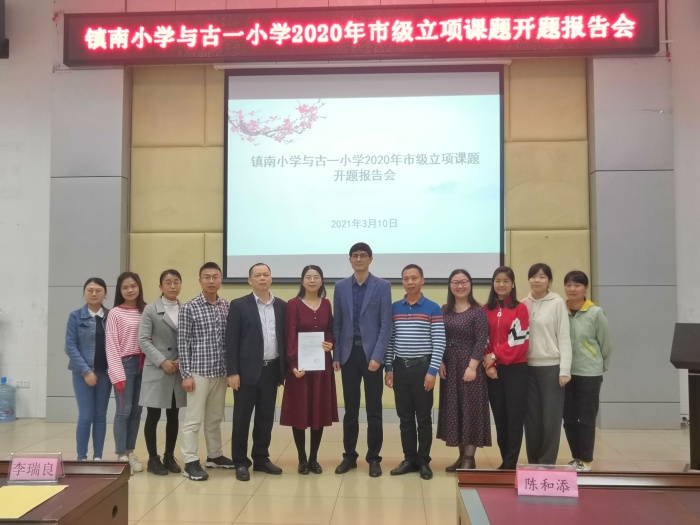為進一步明確課題的研究思路,完善課題實施方案,明晰課題研究思路,再次論證研究課題,3月10日下午,鎮南小學與古一小學2020年市級立項課題開題報告會在鎮南小學報告廳舉行,三項市級立項課題《小學低年級數學繪本教學的行動研究》、《小學語文識字教學中滲透漢字文化的實踐研究》、《學科整合視域下小學優秀傳統文化主題式課程開發與實踐研究》進行了開題工作。古鎮鎮教育與體育事務中心陳和添老師、李瑞良老師、古鎮小學馬焰副校長蒞臨指導。報告會由鎮南小學廖秋菊副校長主持,兩所學校市級立項課題組全體成員、學校各科組長、各學科負責人、骨干教師及樹人坊成員參加了會議。