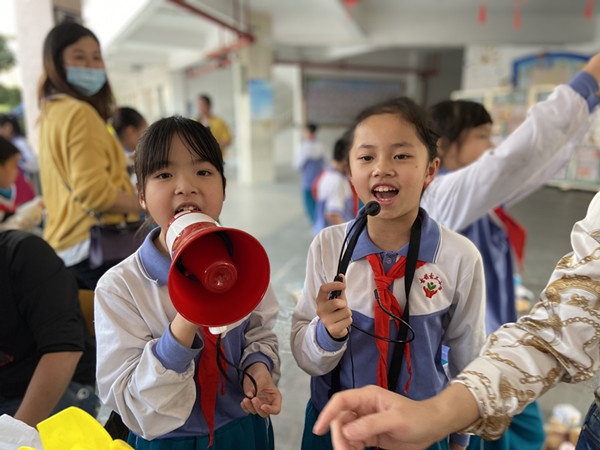 學生們不管是買的賣的都不亦樂乎,大家都心滿意足地拿著自己精心挑選到的物品,有的低價購買了喜愛的二手書籍,有的買到了心愛的玩具,有的通過游戲獲得了獎品,還有的免費熨燙了鮮艷的紅領巾......每個學生臉上都綻放出燦爛的笑容。