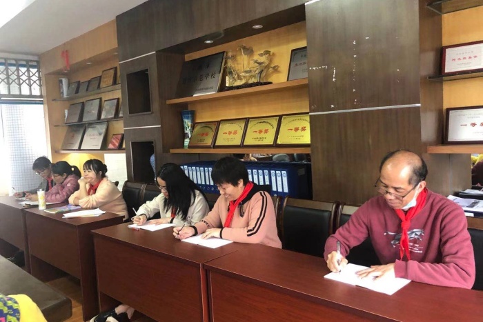 詹主任向大家介紹了“紅領(lǐng)巾爭(zhēng)章”,“紅領(lǐng)巾爭(zhēng)章”共有12個(gè)基礎(chǔ)章,其中向陽章、傳承章、立德章、立志章統(tǒng)稱紅星章,夢(mèng)想章、小主人章、團(tuán)結(jié)章、健體章屬于紅旗章,奉獻(xiàn)章、勞動(dòng)章、勇敢章、節(jié)約章屬于火炬章。詹主任介紹了這12枚章背后內(nèi)涵的意義。此外還有星級(jí)章,各個(gè)等次都有個(gè)人章和集體章,集體獎(jiǎng)?wù)陆Y(jié)合了學(xué)校每周評(píng)選的優(yōu)秀班級(jí)和學(xué)生個(gè)人表現(xiàn)給予相應(yīng)的積分;個(gè)人獎(jiǎng)?wù)聫膶W(xué)生的學(xué)習(xí)成績(jī)、行為習(xí)慣等各個(gè)方面綜合評(píng)定后給予個(gè)人積分。積分到達(dá)其中的星級(jí)獎(jiǎng)?wù)聵?biāo)準(zhǔn)時(shí),便可獲得相應(yīng)的獎(jiǎng)?wù)路Q號(hào)。個(gè)人獎(jiǎng)?wù)峦瑫r(shí)可以參與評(píng)選國家、省、市、縣級(jí)“紅領(lǐng)巾獎(jiǎng)?wù)隆薄W(xué)校還另外設(shè)一枚特色章“明心章”從音體美等個(gè)人特色方面鼓勵(lì)多才多藝的學(xué)生。