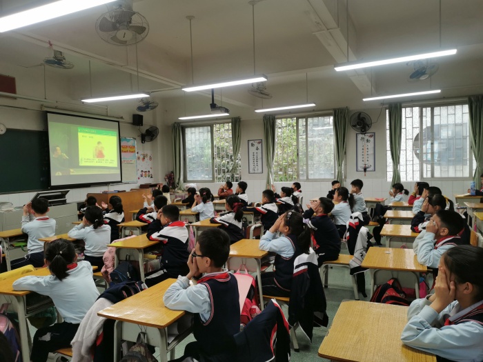 首先,來自古鎮鎮社區衛生服務中心的李醫生向全體師生介紹了導致近視的主要原因,如長時間地看書、看點書,玩各種電子產品,戶外運動較少等。李醫生強調,小學時期是視力成長的重要階段,若是用眼過度,很容易造成近視。接著,為了幫助學生減輕眼睛負擔,李醫生向同學們介紹了預防近視的具體可操作的方法,比如:保持正確的讀書寫字姿態、不長時間玩電子產品、利用下課時間眺望遠方、每天要堅持做眼保健操,多參加體育運動,保持活力等。