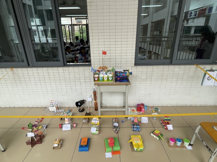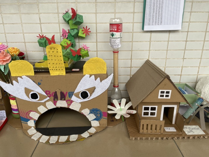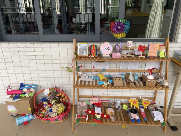 三四年級的孩子們雖然年齡還不大,但動手能力真的很強,來看看他們制作的手工作品里面,很大一部分同學使用到了礦泉水瓶和易拉罐,有的做成了一輛坦克,還有的同學組裝成了一架航天飛機,裝上電池,飛機的扇葉還能轉動,仿佛下一秒真的能沖入太空!只要敢想,一切皆可利用,沒想到礦泉水瓶的蓋子也能被同學們挖掘到它的用處,看這一個個小型的摩天輪和旋轉秋千,讓人仿佛置身小人國里的游樂場,真奇妙!除了這些作品以外,還有些同學使用了紙箱作為制作材料,廢紙箱一直是工廠里最常見的垃圾,學生們變廢為寶,用紙箱搭建了自己理想中的愛心小屋,甚至連飲水機、電視機也可以創造出來,讓人不禁感嘆,科技真的可以打造出一個夢幻家園。各種各樣的創意作品還有很多,真是讓人眼花繚亂,目不暇接。