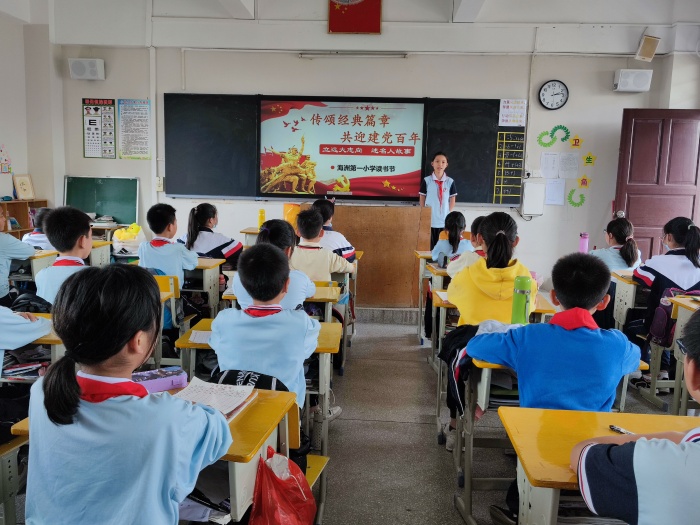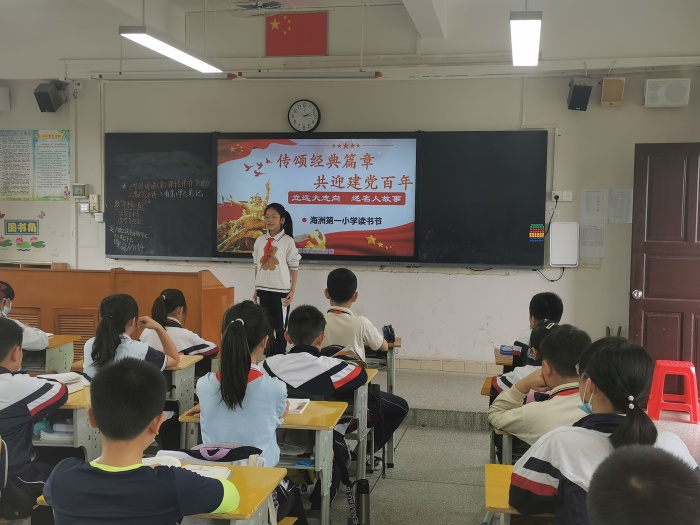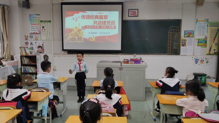 同學們都非常積極踴躍參與本次活動,在語文老師布置演講任務后,他們認真查閱黨史資料與英雄故事,并利用課余時間勤奮練習故事演講。演講活動在各個班級開展得如火如荼,演講的同學激情洋溢地講述著革命英雄的故事,同學們聽得津津有味,教室里不時傳來陣陣掌聲。最后,由班級語文老師和同學們共同推選一位同學參加3月27日由中山市閱讀促進會和中山市求索書苑聯合海洲第一小學舉辦的故事演講展示活動。