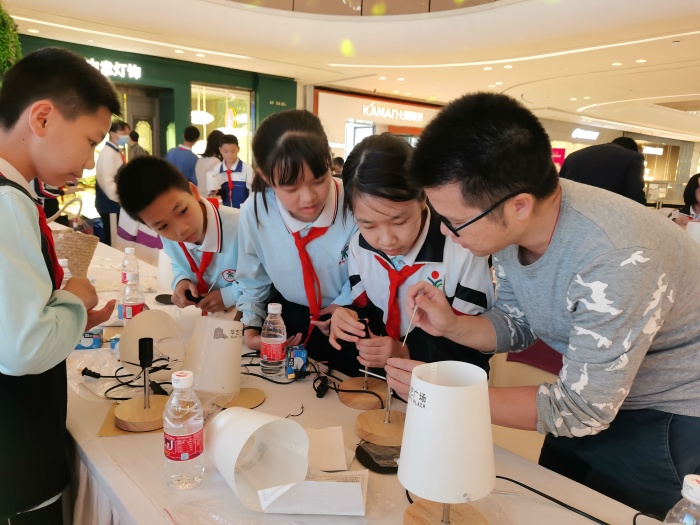 儀式結(jié)束后,各個學(xué)校的師生代表,在華藝集團(tuán)工程師的指導(dǎo)下,進(jìn)行臺燈的組裝。海洲第一小學(xué)的同學(xué)們在王金星老師帶領(lǐng)下,也進(jìn)行了燈飾的組裝。瞧,教師研究得津津有味,孩子們聽得聚精會神。聽完指導(dǎo)后,同學(xué)們拆掉了包裝,拿起了扳手,弄起了小螺絲刀……不久,他們?nèi)松牡谝槐K燈組裝完成了!看著他們和自己親手組裝的第一盞臺燈進(jìn)行合照時,喜悅之情,表露無遺。希望這盞燈,指引孩子們走向更加明亮,光彩的求學(xué)路。