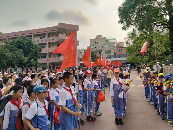 隨后,學校校長陳富權同志致辭。他激勵全體少先隊員要始終做到心中有黨,繼承發揚革命先輩的偉大精神,堅定信念,認真學習,遵守紀律,艱苦奮斗,以自己的實際學習行動告慰革命先烈。