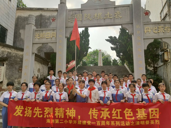 為慶祝建黨一百周年,進一步加強黨員教師及學生的愛國主義教育,激發老師和同學們對革命先烈的緬懷之情,弘揚民族精神,海洲第二小學于4月2日開展以“發揚先烈精神,傳承紅色基因”為主題的清明祭英烈活動。
