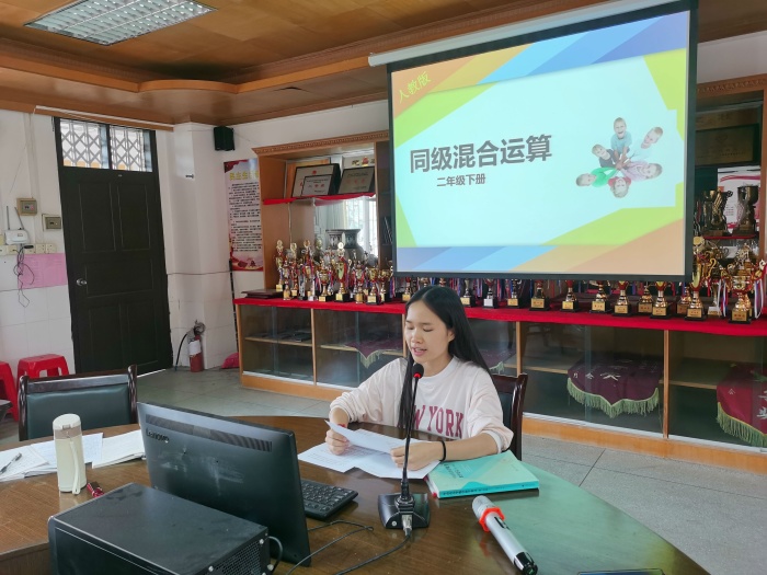 首先,由鄧玉嬋老師和何恩彤老師分別就自己展示的課例《同級混合運算》和《認識面積》進行說課,她們通過說教材、說學情、說目標、說教法、說教學設計、說板書等環節講述了教學的設計理念。