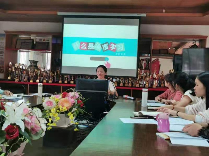 接著,黃業(yè)香老師進行了主題為“什么是深度學習”的讀書分享。從她的分享中,大家清楚地知道,她領(lǐng)悟了深度學習的重要意義,正如她所說:深度學習不僅是培養(yǎng)核心素養(yǎng)的重要途徑,亦是觸及學生心靈的學習方法,教師應充分發(fā)揮主導作用的活動。