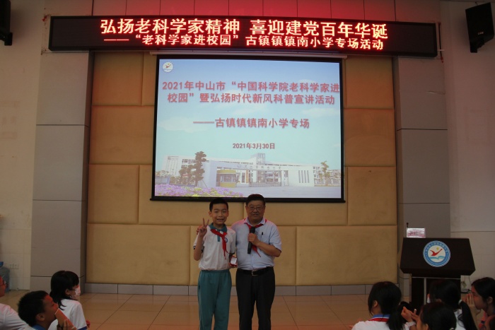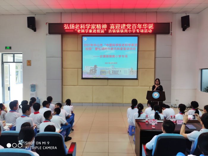 為了豐富校園第五屆科技節(jié)活動(dòng),結(jié)合2021年中山市“中國(guó)科學(xué)院老科學(xué)家科普演講團(tuán)進(jìn)校園”活動(dòng),3月30日,鎮(zhèn)南小學(xué)舉行“老科學(xué)家進(jìn)校園”暨弘揚(yáng)時(shí)代新風(fēng)科普宣講活動(dòng)。此次活動(dòng)特邀請(qǐng)中國(guó)科學(xué)院老科學(xué)家宣講團(tuán)成員李建軍博士開(kāi)展以《恐龍足跡講述遠(yuǎn)古故事》為主題的宣講活動(dòng)。鎮(zhèn)南小學(xué)校長(zhǎng)楊紅衛(wèi)、副校長(zhǎng)廖秋菊和六年級(jí)全體師生共享此次科學(xué)盛宴。
