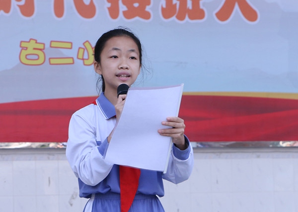 儀式第二環節:書記動員發言。古二小學黨支部書記林德歡宣布正式啟動建黨100周年系列主題教育暨黨史學習教育,要求全校師生要在“學”字上下功夫,將黨史學習融入課堂和學生的日常行為規范,爭當學習表率;要在“悟”字上強思想,不斷推進理論創新,永葆立德樹人初心,奮力開創教育發展的新局面;要在“做”字上見成效,關注熱點、突出重點、解決難點,辦好人民滿意的有溫度的高質量教育;要在“實”字上嚴要求,立足實際、力求實效,放在教學過程中一體謀劃、一體推進。