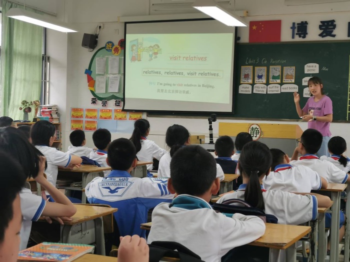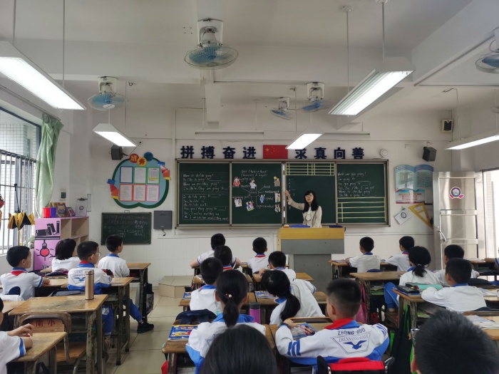 首先進行的是第一項議程,老師們分級組進行聽課和評課,老師們課后及時反饋反思評價課堂教學不足,提出改進方法,起到一人上課,團隊共同參與反思比較,促進個人課堂教學優化發展,最終達成團隊協作共同提高教育教學質量的目的。陳澤旋老師上的是四年級unit3bank or beach的詞匯課。陳老師精心設計,運用視頻將單詞融合,整體呈現單詞,趣味性較強。陳老師在單詞朗讀方面,運用了多種形式朗讀,如逐個朗讀、小組讀、男女生讀等,檢測面較廣,常規呈現的不錯。張雪老師教學的內容是五年級unit3 On Vacation的詞匯課。張老師以語篇為載體,引入詞匯教學,視頻內容緊扣課本詞匯,學生積極性高,參與面廣。張老師的課堂組織能力強,學生操練形式多樣,結合小組訓練,落實學生的讀說能力。