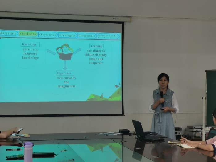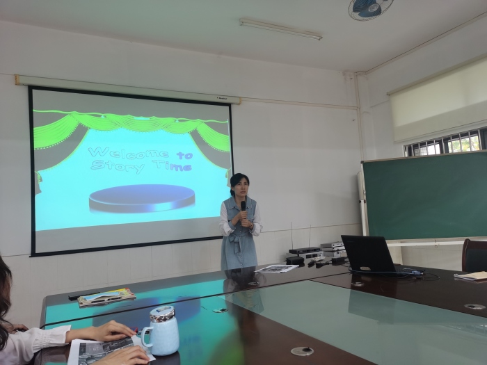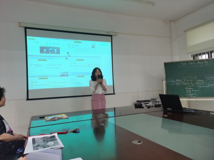 接著,科組老師共同觀摩了李靈燕老師和陳慧晶老師的說課和講故事的展示。本次說課繪本主題是Fat Cat’s Busy Day,李老師的說課環節緊湊、語言流暢、重難點突出,講故事環節語言生動、表演性強,美中不足的是略有超時;陳老師的說課詳略得體、板書的設計較好、時間掌控較為合理,講故事環節表情豐富、趣味性強,但說課過程的流暢度需要加強。