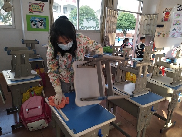 師生、家長齊動手,不懼臟、苦、累!大家擦窗、掃地、擦黑板、拖地、整理書柜,各司其職,一些比較隱蔽、平時容易被忽略的衛生死角,如吊頂風扇、天花板四角,也被師生、家長們細心清理,校園內都是一片熱火朝天的勞動景象。通過大家的努力,校園也因此變得干凈、整潔、美麗。