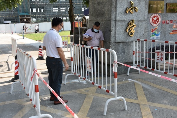 隨后,驗收小組對照《中山市中小學校幼兒園學生返校準備工作驗收表》,逐項查閱了該校“兩案九制”等57項檢驗內容,并進行有關方面的詢問。驗收小組表示,學校對防控工作高度重視,臺賬資料準備完善,方案制定合理,緊急措施到位。