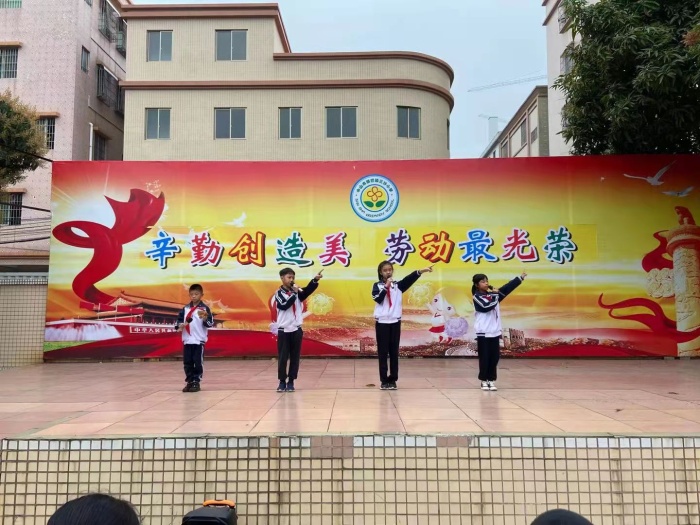 最后,吳雨優、張梓源等幾個小演員還通過快板、唱歌的形式表演了節目《勞動最光榮》,生動地向全校師生詮釋了“辛勤創造美,勞動最光榮”的主題,用一種輕松活潑的形式使同學們受到了深刻的勞動教育。