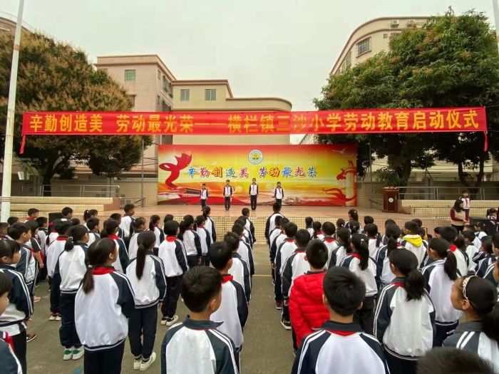 為了進一步增強學生的勞動意識,培養學生的獨立生活能力和進取精神,傳承中華民族勤奮自強的傳統美德,2021年3月1日,橫欄鎮三沙小學在籃球場舉行了主題為“辛勤創造美,勞動最光榮”的勞動教育啟動儀式。