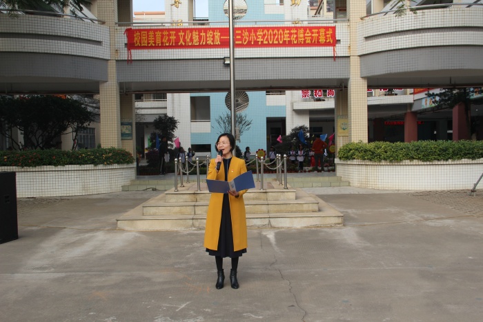 9時整,全體師生和參加花博會的家長、嘉賓齊聚學(xué)校足球場,舉行了一個簡短的花博會開幕式。開幕式由三沙小學(xué)王巧玲老師主持,馮紅燕校長上臺發(fā)表了熱情洋溢的開幕致辭,詳細(xì)介紹了三沙小學(xué)“以美養(yǎng)德、以美啟智、以美健體、以美引善”的辦學(xué)理念和“以美育人”教育的豐碩成果,還闡述了舉辦花博會的目的,并預(yù)祝花博會圓滿成功。
