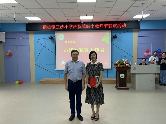 2020年9月10日下午,橫欄鎮三沙小學在教學樓一樓錄播室舉行了慶祝第36個教師節聯歡活動。參加聯歡活動的領導有橫欄鎮黨委委員趙國明,三沙村蘇日洪書記、黃國珍副書記、橫欄鎮教育事務指導中心梁靈敏專干和三沙小學全體教師。聯歡活動由陸榮健老師和鄧翠枝老師主持。