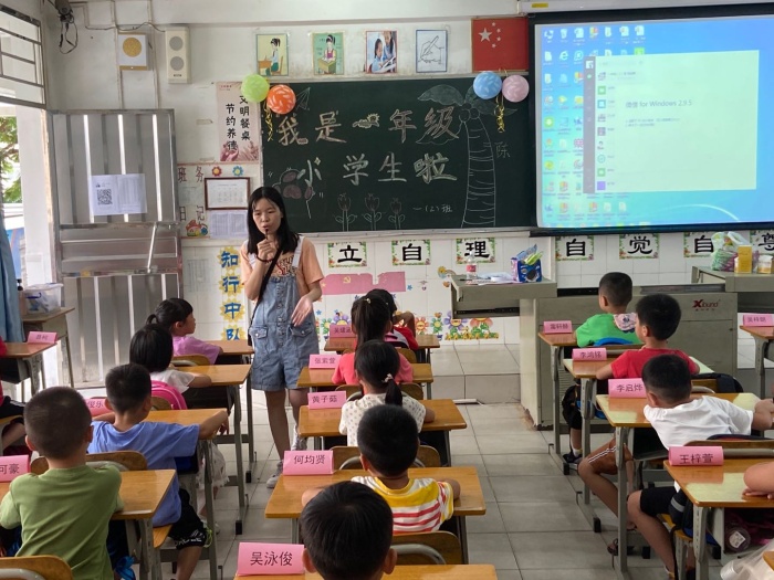 當天下午,一年級的新生在家長的帶領下,高高興興地來到校園,按照學校的規劃先走紅地毯進校園,然后簽到、找教室、找座位,此時孩子們臉上露出了初入校園的好奇和興奮的笑容。隨后,家長們帶小孩到二樓班級簽到,并掃描二維碼加入班級微信群。