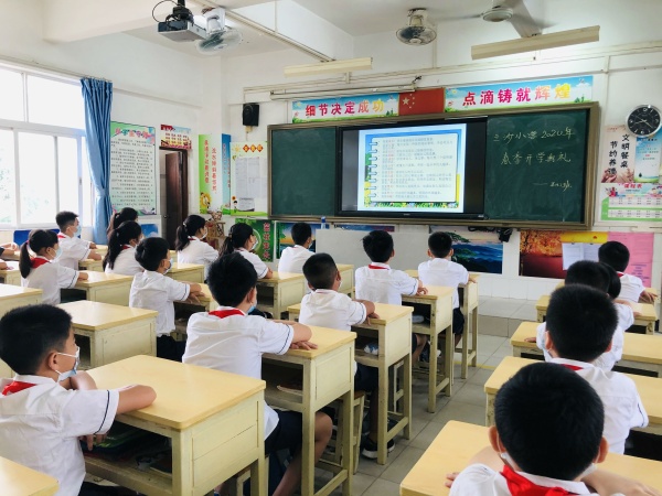 漫長的寒假終于結(jié)束,沉寂已久的校園按下了重啟鍵,迎來了孩子們久違的歡笑聲。5月18日上午,橫欄鎮(zhèn)三沙小學(xué)四到六年級全體學(xué)生順利返校,并在教室參加了一場特殊的開學(xué)典禮。