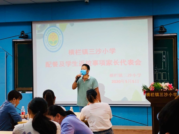 為進(jìn)一步改善學(xué)生的午餐質(zhì)量,充分發(fā)揮家長(zhǎng)代表的監(jiān)督和管理作用,同時(shí)為學(xué)生安全返校做好相關(guān)準(zhǔn)備工作,橫欄鎮(zhèn)三沙小學(xué)于5月5日下午在學(xué)校階梯室召開(kāi)了配餐及學(xué)生返校事項(xiàng)家長(zhǎng)代表會(huì)。會(huì)議由三沙小學(xué)游學(xué)偉校長(zhǎng)主持,每班兩名家長(zhǎng)代表參加會(huì)議。