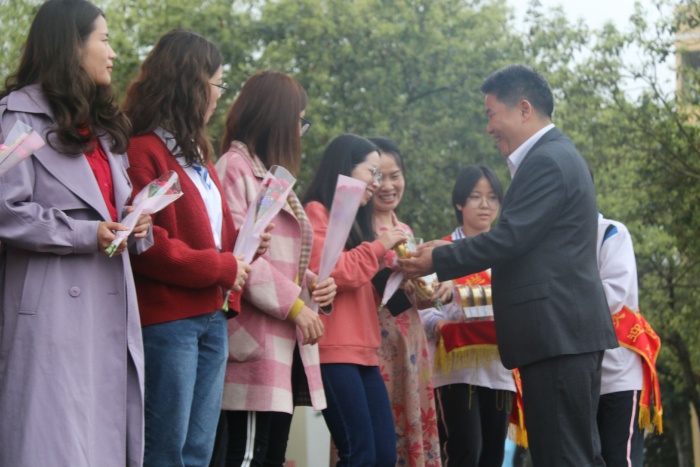 最后,黎校長攜校領導把這份祝福和期望寄托在一支支的鮮花和一盒盒的巧克力中,送到全校每一位女教職工手中。