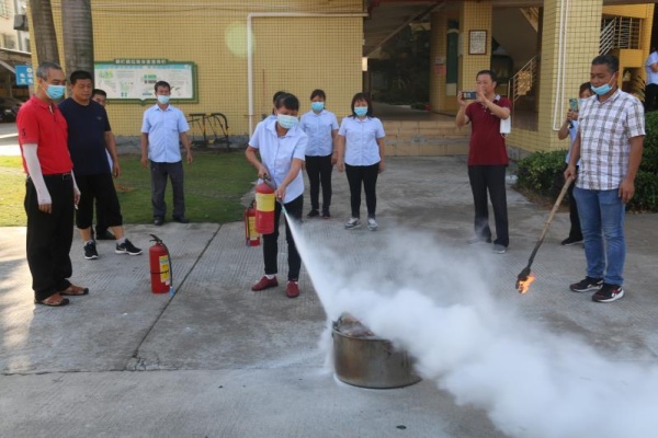 消防安全工作不僅要掌握理論知識,更重要的是進行實際操作。為了提高職工的實際消防操作能力,培訓(xùn)班還安排在學(xué)校教學(xué)樓前的空曠地進行滅火實操訓(xùn)練。黃富榮給大家演示正確使用滅火器進行滅火以及正確使用消防栓的實操示范,然后讓每個后勤職工進行實際操作訓(xùn)練。