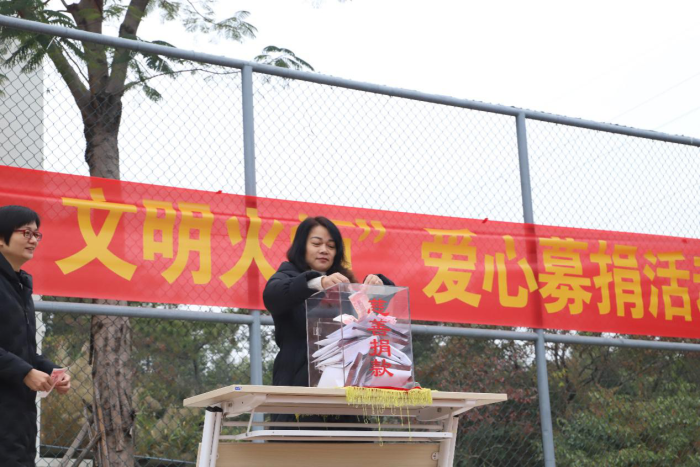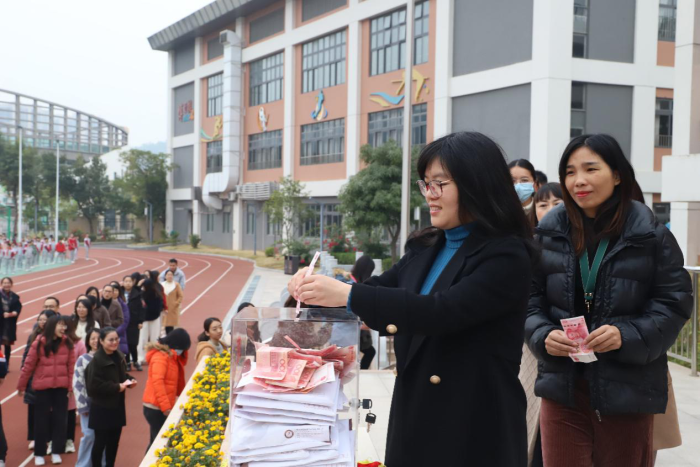 1月7日,全體師生在國旗下隆重舉行了2021年“慈善萬人行”慈善捐款和愛心衣物捐贈活動。學(xué)校全體教師有序排隊捐出善款,為同學(xué)們做出表率。各班學(xué)生代表鄭重地把本班所籌集的善款投入箱中,一雙雙溫暖的小手,將愛匯聚。