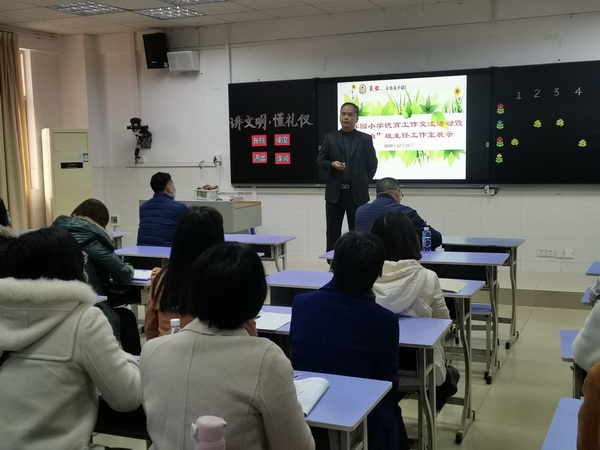 活動一開始,香暉園小學“螢火蟲”工作室成員孫嘉優老師攜同一(2)班的孩子們為大家帶來了班會課《講文明,懂禮儀》,孫老師用富有感染力的語言,結合孩子生活實際,從課間、升旗、進出辦公室等方面讓同學們明白了“講文明,懂禮儀”的重要性。隨后,該校陳澤湖校長為黃圃新地中心小學的同仁們介紹了學校的關懷教育理念,陳校長從學校的核心追求到培養目標,從辦學目標到校風學風作了詳細的講解,在座嘉賓不時點頭表示認同。緊接著,該校周溫馳老師和五6班學生代表為大家分享了“勇于擔當肩負使命,勤奮自律踐行愛國”小啟超特色班創建歷程,何小蘭老師為大家展示了《尋訪拳拳中國心,爭做火炬“小紅人”》的少先隊活動說課。新地中心小學的老師們紛紛表示:香暉園小學展示的這些活動給他們開展班主任工作提供了范例,是他們學習的榜樣。
