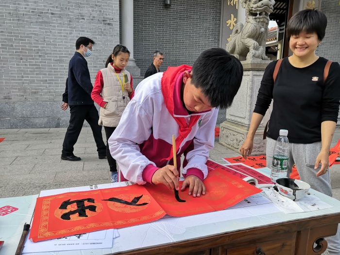 1月28日下午,李堆威、丘志偉兩位老師帶領著開發區第一小學書法社團的學生參加了由火炬區書法中心教研組與濠頭聯富社區聯合舉行的“迎新春送春聯”活動。當天活動現場處處洋溢著濃濃的新年節日氛圍,開發區第一小學書法社團的“小書法家”們自信大膽地展現了扎實的書法功底,得到了社區居民一致稱贊。短短的2個小時,開發區第一小學的“小書法家”們書寫了近百幅春聯,將這些春聯凝結成一份份美好的祝福,真摯地送給社區居民。