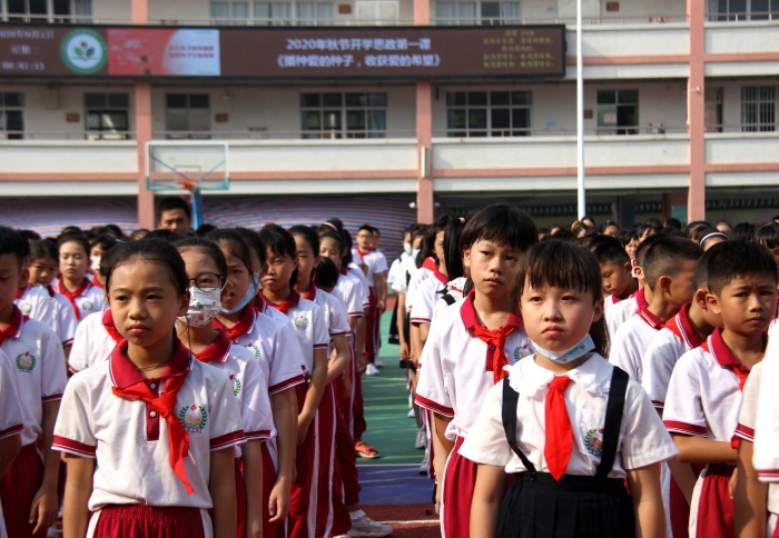 炎炎夏日即將過(guò)去,正是“風(fēng)暖花艷蒸蒸日上”之時(shí)。同學(xué)們度過(guò)了一個(gè)安全、快樂(lè)的暑假,滿懷著對(duì)暑假生活的美好記憶神采盎然地回到學(xué)校。在漸漸步入秋天的美好時(shí)光里,9月1日早上,開(kāi)發(fā)區(qū)第一小學(xué)乘風(fēng)破浪,為新學(xué)期的學(xué)生正衣冠、樹(shù)理想。全校師生精神飽滿,齊聚校園操場(chǎng),隨著雄壯的國(guó)歌響起,鮮艷美麗的五星紅旗在校園里冉冉升起。升旗儀式結(jié)束后。劉光旗校長(zhǎng)以“播種愛(ài)的種子,收獲愛(ài)的希望”為主題,為全體師生上了一堂生動(dòng)而大氣的新學(xué)期第一節(jié)思政課。