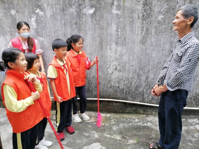在老人家里,志愿者們幫忙打掃衛(wèi)生,與老人們拉拉家常,詳細(xì)了解他們家庭、生活和健康狀況,傾聽他們的心聲,提醒他們注意身體健康并送上由聯(lián)富村關(guān)工委準(zhǔn)備的慰問品。為老人們送去了節(jié)日的問候,讓老人們深深感受到了新時代少先隊員尊老敬老的關(guān)懷與溫暖。