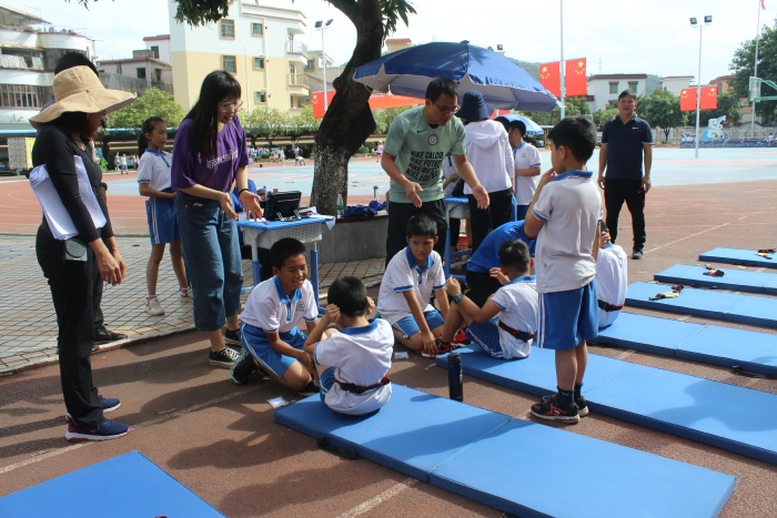 測試當天,中山市學生體質健康抽測專家小組在第五小學體育老師的協助下,對開發區第五小學1-6年級240名學生進行了體質健康抽測。測試的項目有:身高、體重、肺活量、坐位體前屈、50米、50米*8、一分鐘跳繩、一分鐘仰臥起坐。各班正副班主任、家長義工全程陪同,按照方案認真組織學生安全有序地進行測試。最終以60%的優良率高質量通過本次測試。