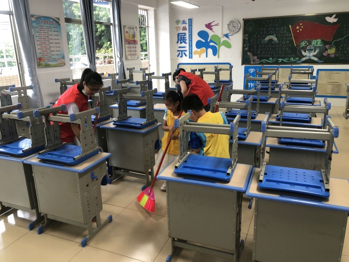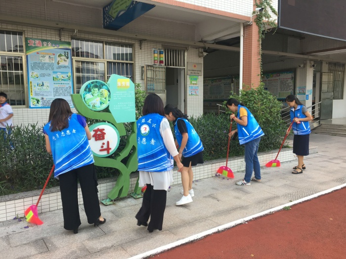 親子義工隊成員、教師志愿者們利用放學后的時間留校開展本次愛國衛生運動。在大掃除活動中,志愿者們熱情高昂,分工明細,配合默契,拿起抹布、舞動掃帚,對校園內外、教室、操場等進行擦拭、垃圾清除,對走廊、過道、樓梯及衛生死角進行了一次徹底的沖洗,做到校園及周邊公共區域干凈、整潔、清爽,經過大家的辛勤勞動,整個校園環境煥然一新。整個過程體現出“我奉獻、我快樂、我參與、我成長”的精神內涵。